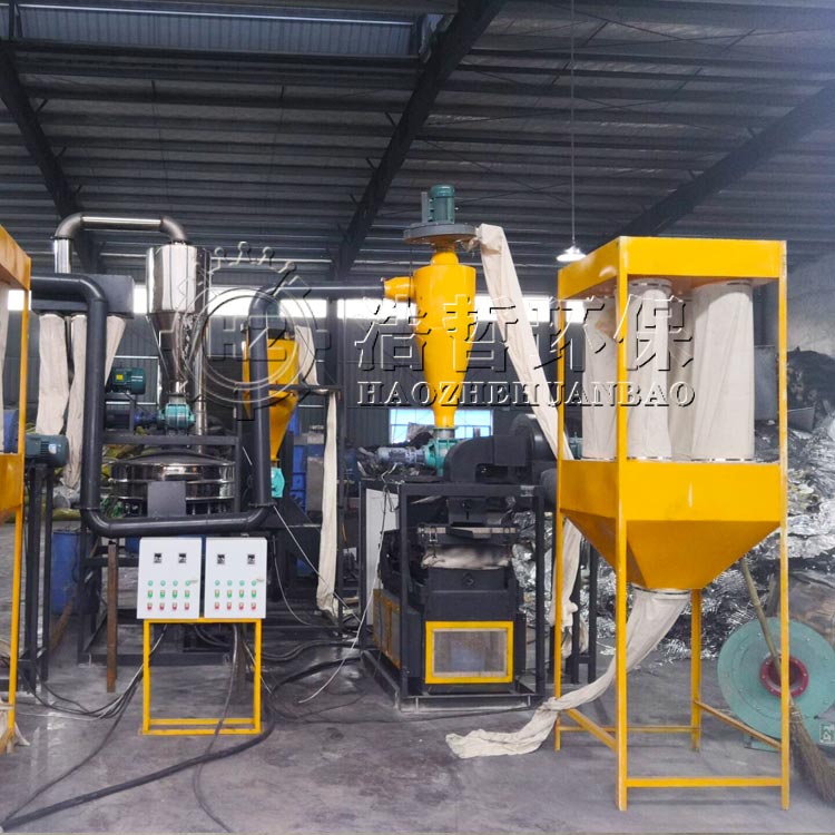 浩哲環(huán)保生產(chǎn)的鋁塑膜分離設(shè)備完全采用機(jī)械分離方法,鋁塑膜分離設(shè)備是指將鋁塑復(fù)合材料的鋁、塑兩種材質(zhì)徹底地分離為金屬和塑料的設(shè)備。完全干式物理分離,不造成二次環(huán)境污染,具有較好的社會(huì)資源效益和經(jīng)濟(jì)效益。